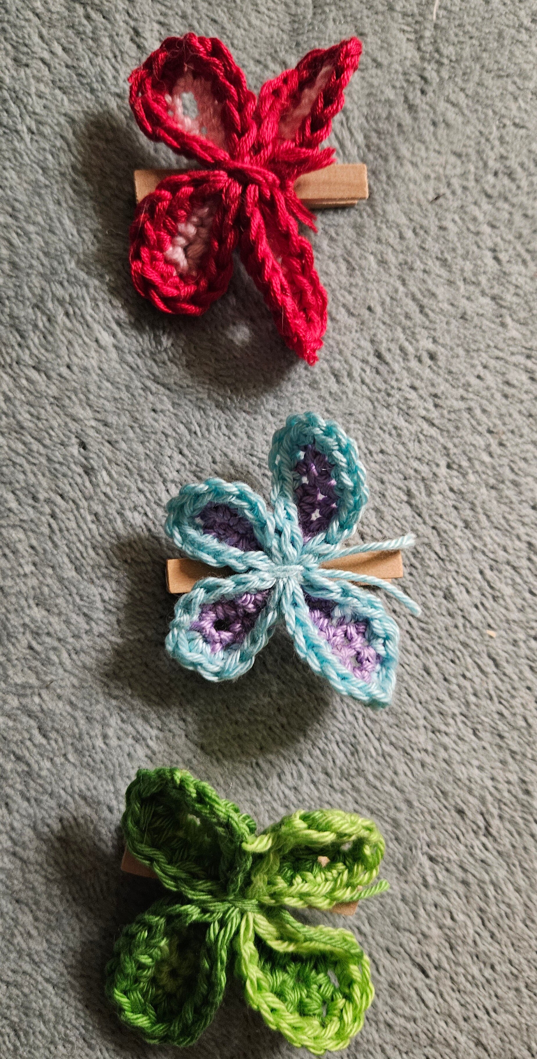 Materialien: Bauwollgarn, Holzklammer oder Magnet