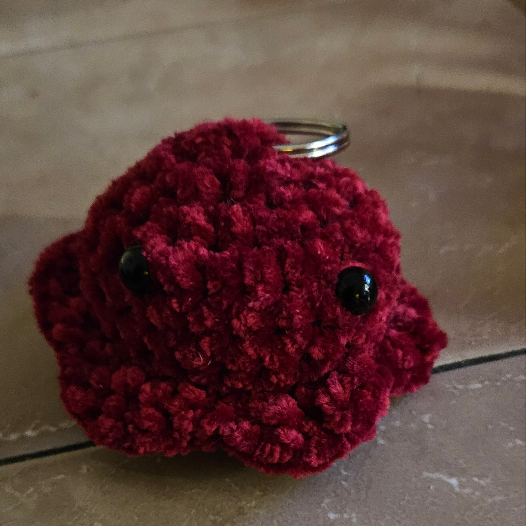 Materialien: Polyacryl, Sicherheitsaugen, Schlüsselring und Füllwatte.